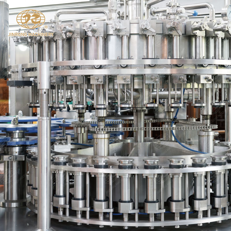 三合一含汽飲料灌裝機集清洗、灌裝、旋蓋于一體的灌裝設(shè)備,成套飲料生產(chǎn)線適合汽水、可樂、蘇打水、氣泡水等。玻璃瓶含汽飲料灌裝機組內(nèi)部一次完成洗瓶、灌裝、封蓋三道工序,瓶子磨損小、傳動準確平穩(wěn)、瓶型更換便捷。