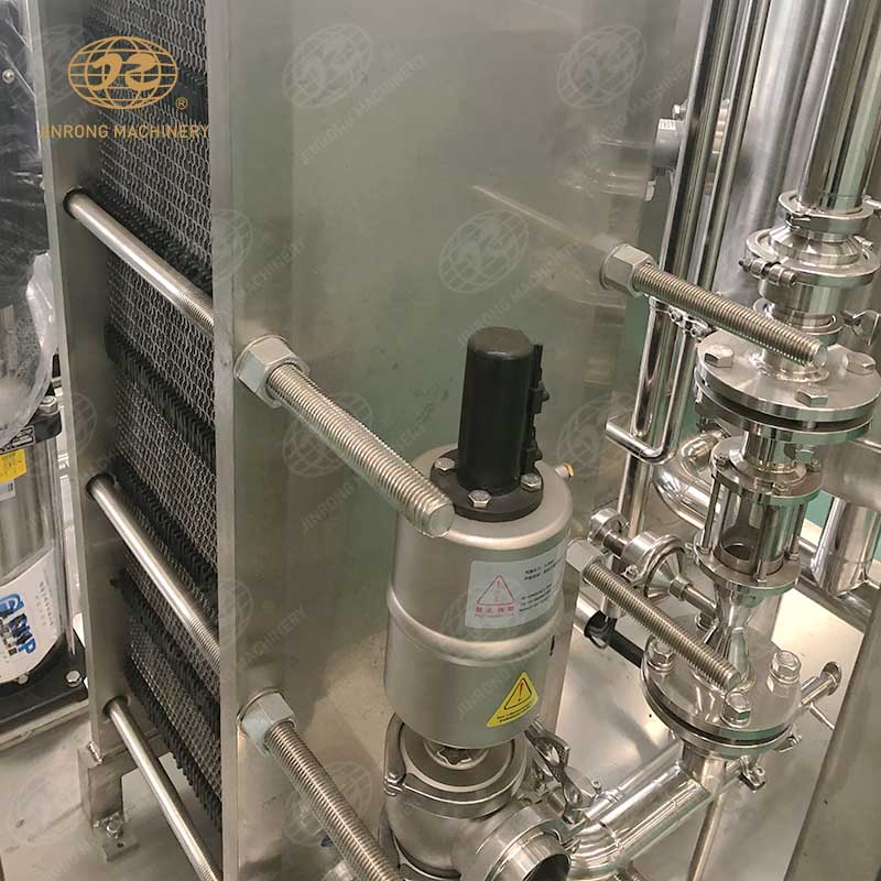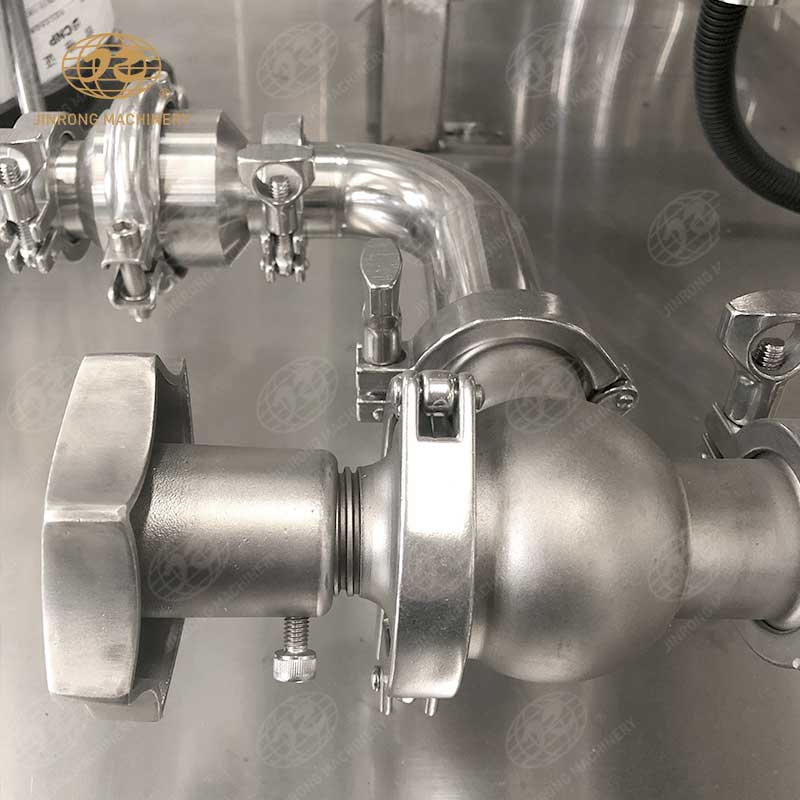 4. 混合機(jī)器采用板式換熱器進(jìn)行冷卻。當(dāng)飲料水和稀糖漿通過(guò)帶刻度的手動(dòng)調(diào)節(jié)閥進(jìn)入混合罐時(shí),混合泵升壓后進(jìn)入板式換熱器,充分混合飲料水和稀糖漿。同時(shí),利用板式換熱器的固有特點(diǎn),在另一側(cè)加冰水,不僅可以混合飲料水和細(xì)糖漿,還可以降低溫度,提高碳化效果。在進(jìn)入之前,可以添加適當(dāng)?shù)亩趸迹垣@得更好的糖,水和天然氣混合物。