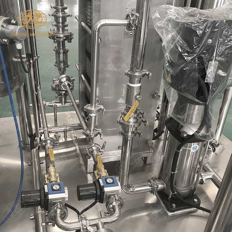 1. 二氧化碳混合機(jī)采用噴油器加CO 2和文丘里噴油器,噴油器始終保持恒定流量,保證靜止的流動(dòng)狀態(tài)。除傳熱面積大,阻力損失小,效率高,能耗低,結(jié)構(gòu)簡(jiǎn)單外,采用多級(jí)混合泵,性能可靠,噪音低。成品罐上的浮球液位控制器控制啟/停,保證了飲料混合機(jī)的性能。