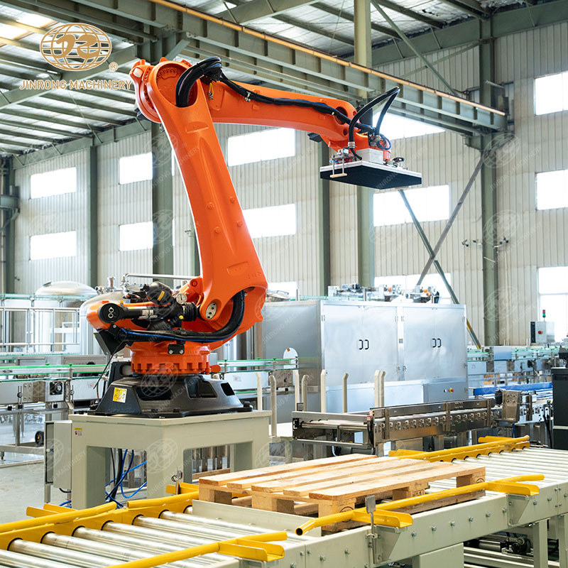 14. 碼垛機:將膜包好的易拉罐按照一定的排列方式堆碼成垛,以便于叉車等搬運設(shè)備進行搬運和存儲,提高物流效率。